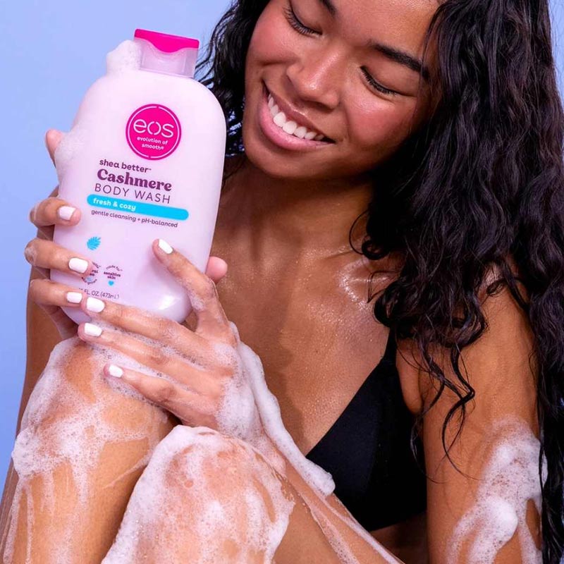 Astuce beauté : Pour un rituel sensoriel complet, associez votre gel douche à votre lait corps eos préféré.