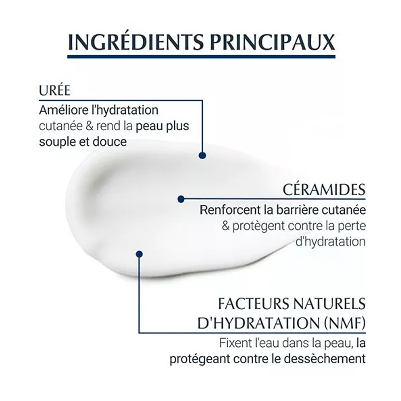 Aqua, glycerine, uree, Dibutyl Adipate, Glyceryl Stearate, Stearyl Alcohol, Dicaprylyl Ether, Cetearyl Alcohol, Sodium Lactate, Tapioca Starch, Glyceryl Stearate SE, Ceramide NP, Lactic Acid, Arginine HCL, Sodium PCA, Cholesterol, Helianthus Annuus Seed Oil, Alanine, carnitine, Glycine, Sodium Chloride, Dimethicone, Xanthan Gum, Sodium Cetearyl Sulfate, Decylene Glycol, Phenoxyethanol, Pentylene Glycol