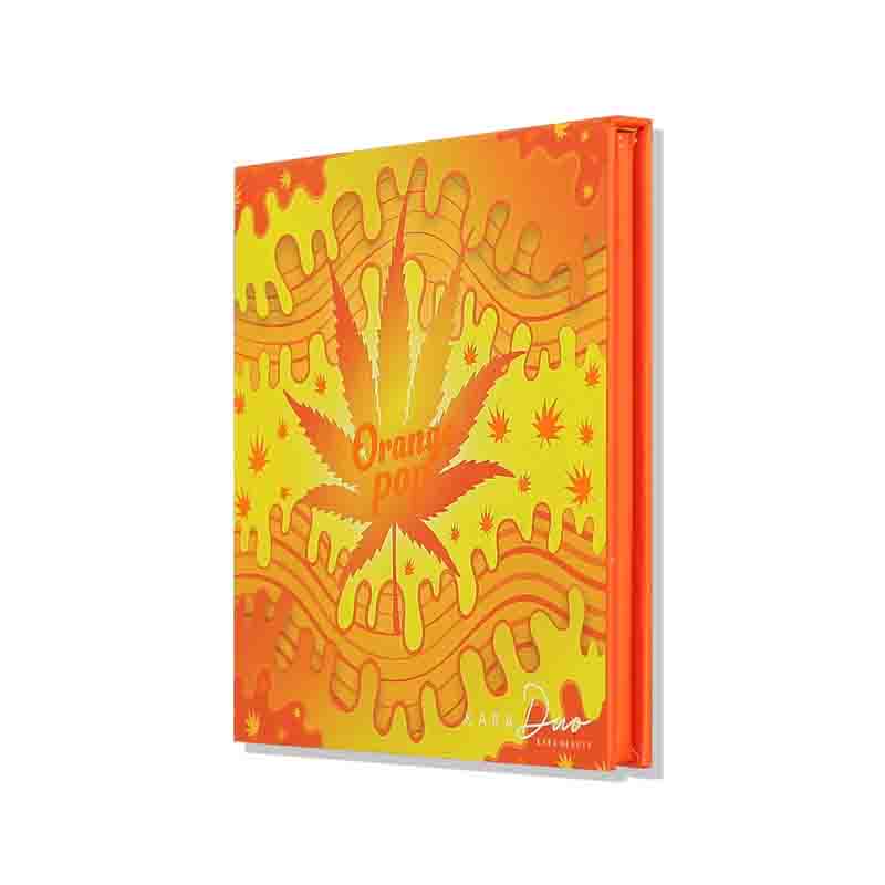 Orange Pop est une palette artistique sophistiquée, présentée dans un superbe étui carré orange jaune orné de dorés et un miroir à l’intérieur.