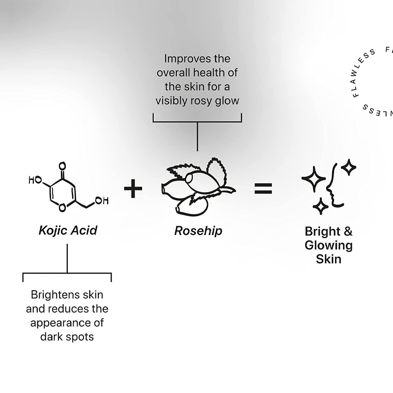 Cetyl Alcohol, Glyceryl Stearate, Triethanolamine, Polydecene, Dimethicone, Cyclopentasiloxane, Vitamin E, Kojic Acid, Collagen, Elastic, Rose Hips Extract, C12-15, Alkyl Benzoate, Carbomer, Ceteareth-20, Glycol Distearate, Stearic Acid, Methylisothiazolinone (and) Chlorphenesin, Titanium Dioxide, Fragrance, De-ionized Water. Sans PARABEN.