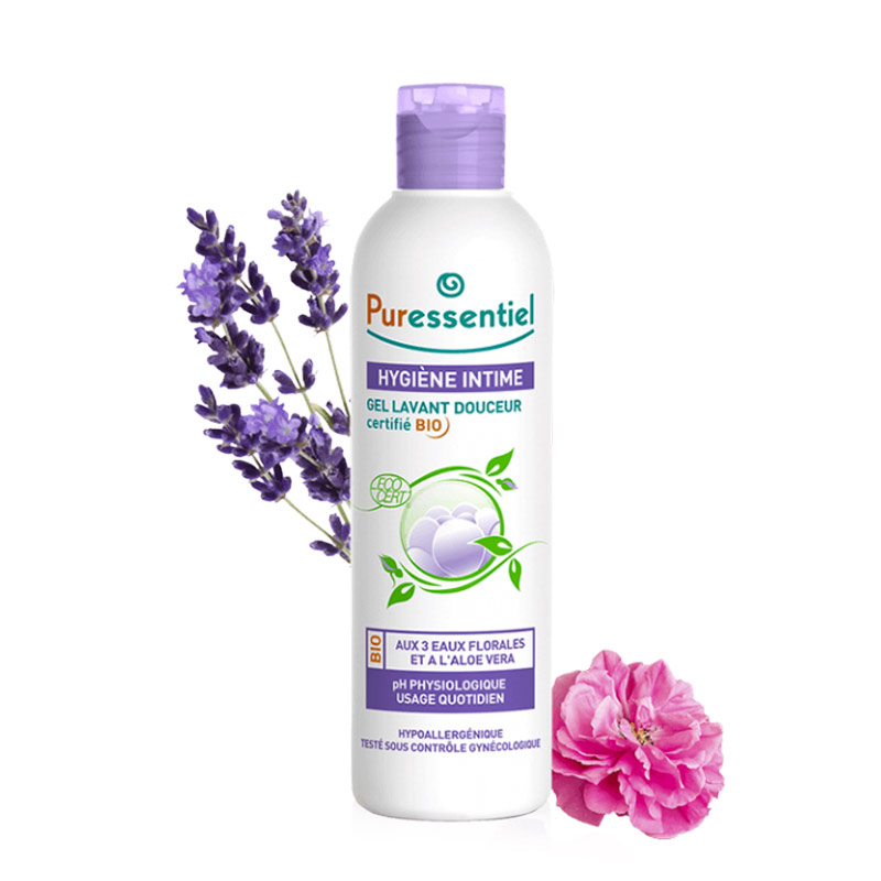 Grâce à sa base lavante ultra-douce sans savon et à son pH physiologique, Puressentiel Gel lavant douceur certifié Bio nettoie en douceur, tout en respectant la sensibilité et l’équilibre de la zone intime. Il est spécialement formulé pour les muqueuses et les peaux sensibles. Sa formule associe 3 eaux florales bio (rose de Damas, camomille romaine et sauge officinale), des huiles essentielles bio (arbre à thé, lavande vraie) et de l’aloe vera bio, aux propriétés apaisantes, rafraîchissantes et hydratantes.Il protège au quotidien les désagréments de la zone intime. Son excellente tolérance a été testée sous contrôle gynécologique.