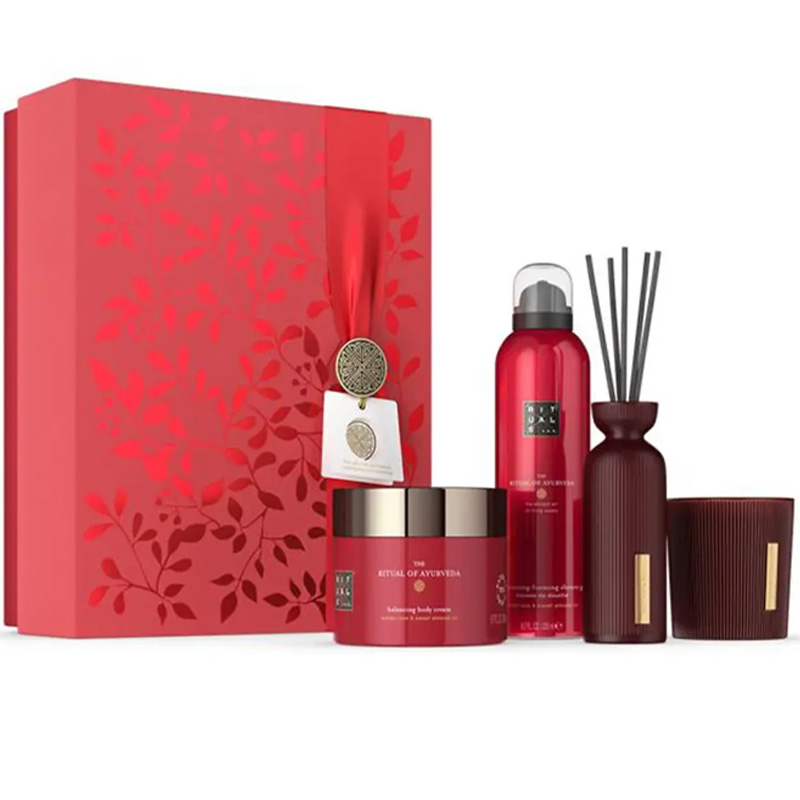 - Une crème pour le corps (70 ml – format découverte) : La rose indienne et les propriétés hydratantes de l’huile d’amande douce de la crème pour le corps The Ritual of Ayurveda permettent de nourrir intensément la peau tout en la laissant agréablement parfumée.
